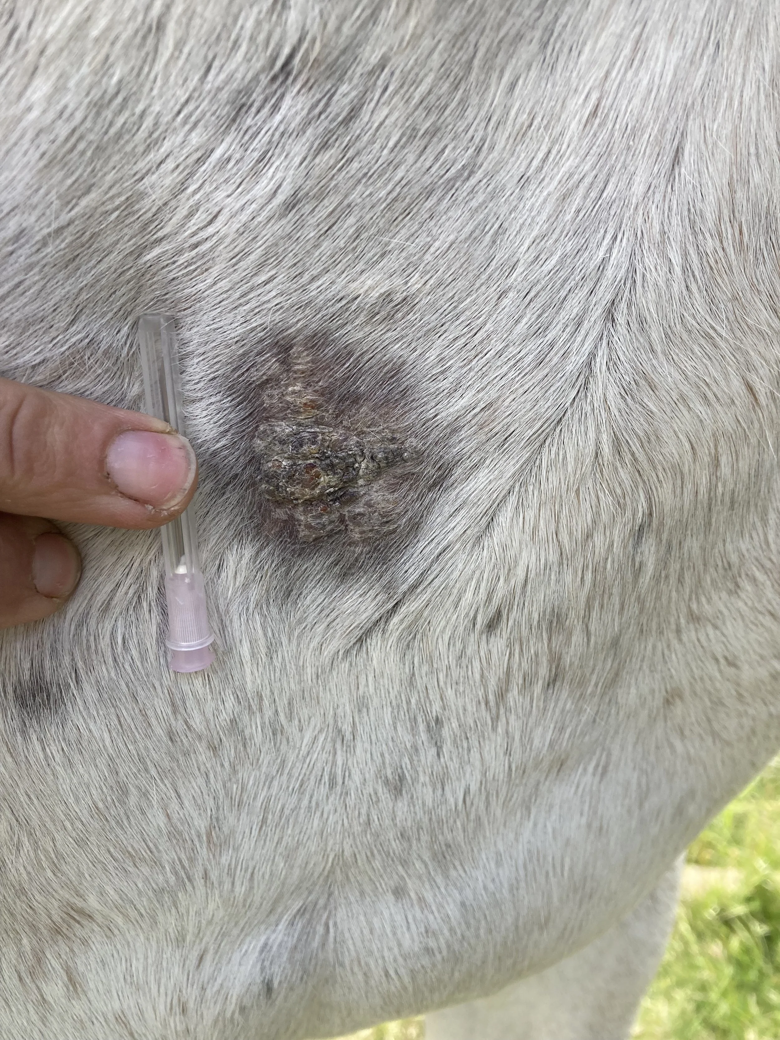 Equine sarcoids are one of the most common forms of skin cancer amongst equines. 2-8% off all horses will have some form of sarcoids during their life. There are can be locally infiltrative and aggressively tract through muscle planes. There is a huge variation of sarcoids and treatment depends on location, type of sarcoid and size.